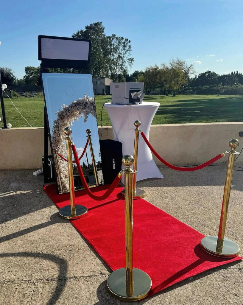 Enjoy the ultimate mirror photo booth experience, where full-length touch-screen interaction, animated prompts, and instant photo prints capture every smile, laugh, and celebration in style.